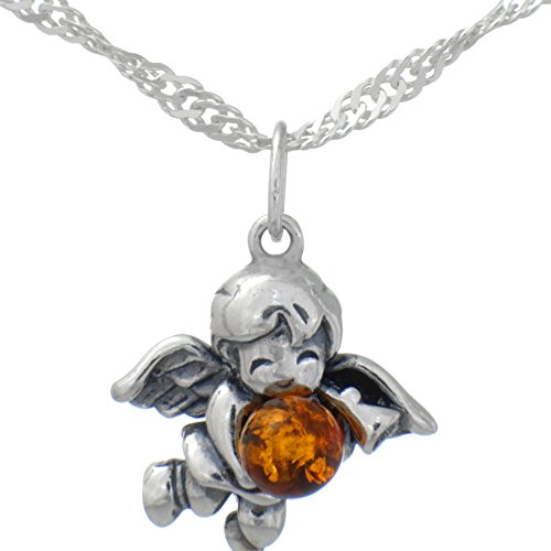 Bernstein Knaben Schutzengel Kettenanhänger in 925er Silber#416